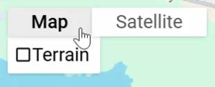 - Hover over the Map button for the Terrain checkbox to appear. You can select the Terrain checkbox to add terrain to the street map.