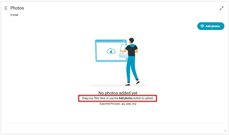 Alternatively, click the Add photos button to add a new photo to the assignment. From here, the process is the same as it was in the previous Assignment Detail design.