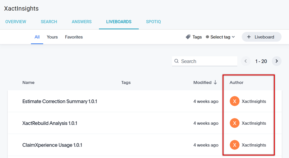 We updated the Liveboards tab to reflect the new XactInsights name! Now, instead of XactAnalysis Insights, the author shown for our pre-built liveboards is XactInsights.