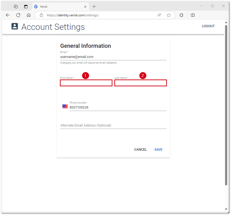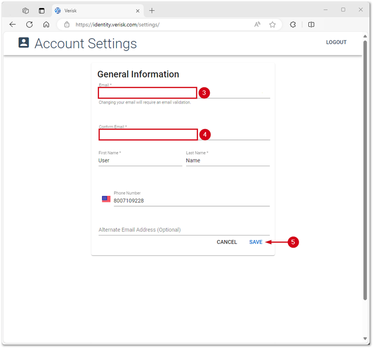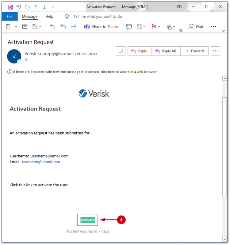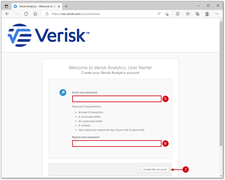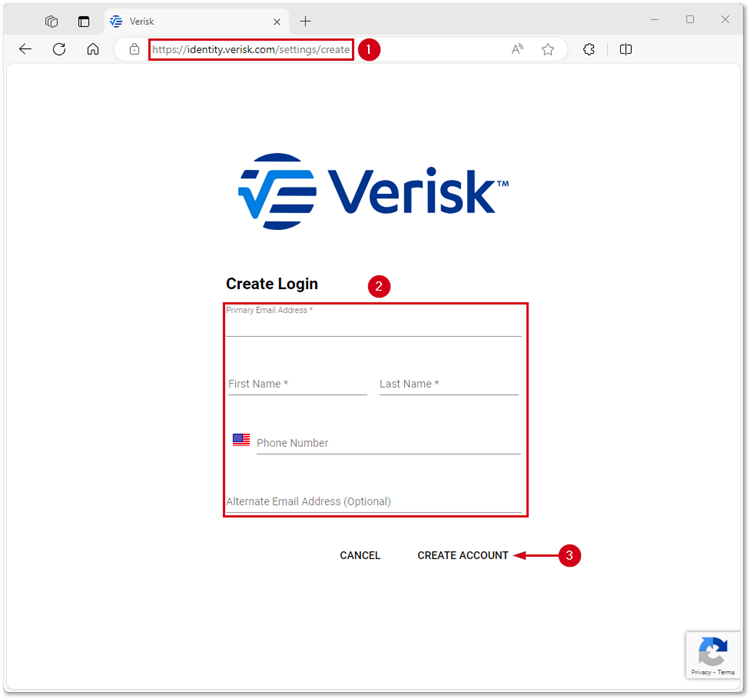 - Click CREATE ACCOUNT. An email will be sent from noreply@ssomail.verisk.com to the primary email address with the subject Activation Request.