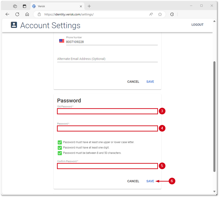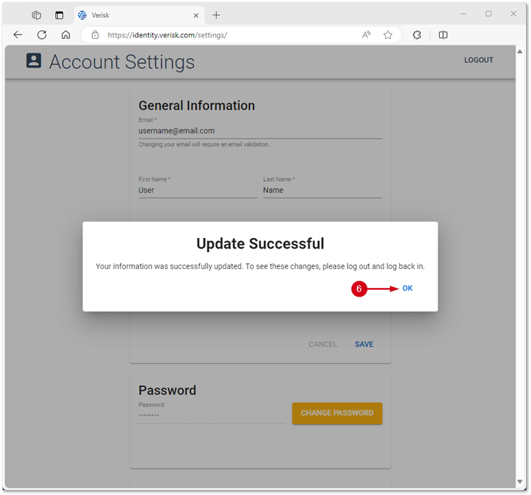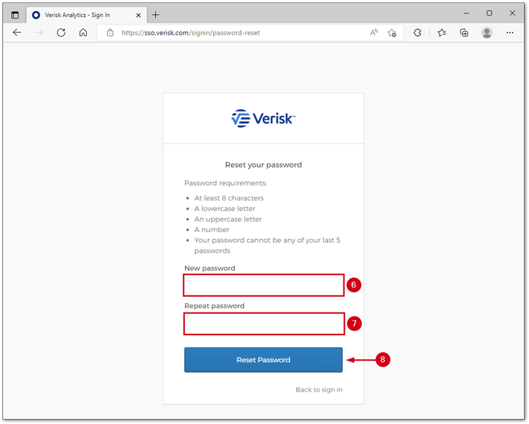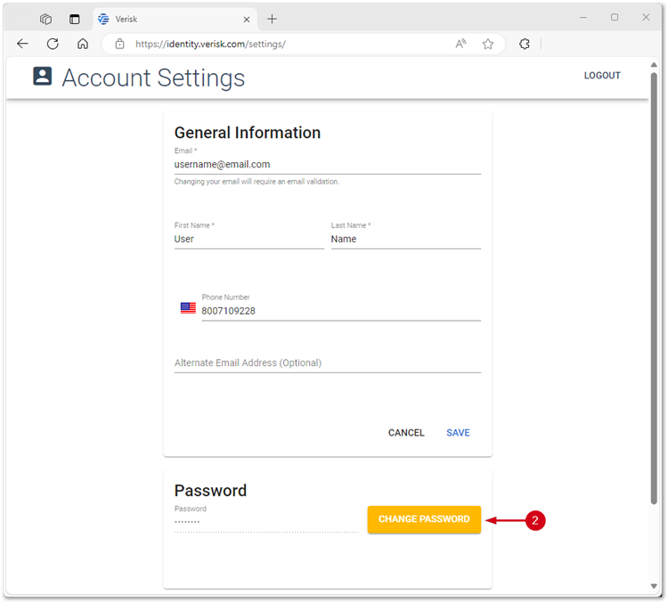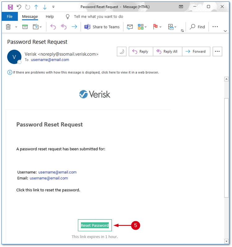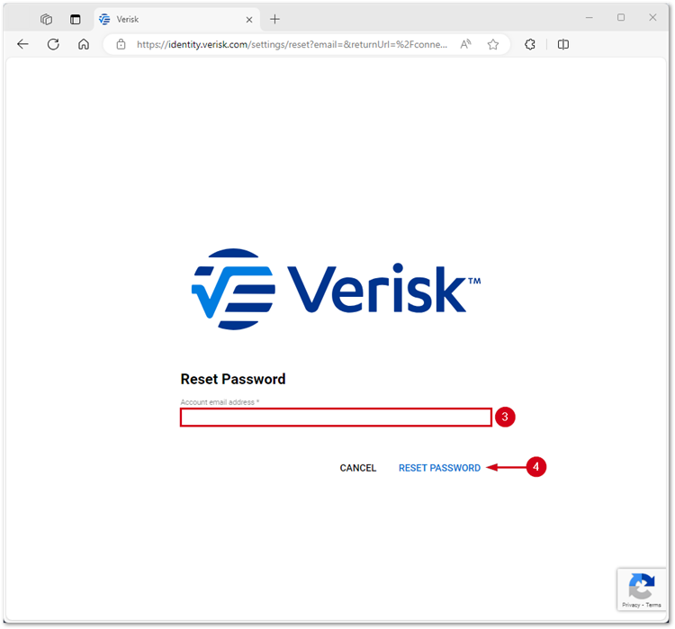 - Click RESET PASSWORD. An email will be sent from noreply@ssomail.verisk.com to the primary email address with the subject Password Reset.