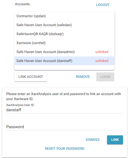 When you log in to XactAnalysis with your Xactware ID for the first time, you will be required to link your XactAnalysis account(s) with your new Xactware ID.