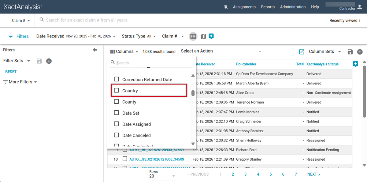 We added a new Country column! It displays the country of the risk location and complements other Search columns such as City, County, and Zip/Postal Code.