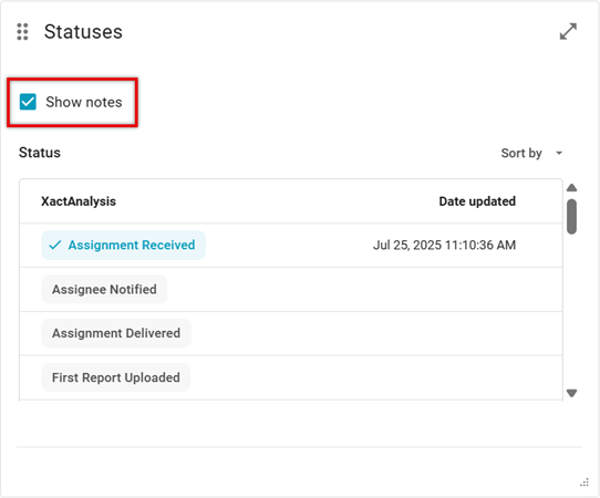 XactAnalysis also automatically adds system notes as certain assignment events occur, such as status updates or action item events.
