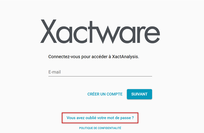 Si vous n’êtes pas un nouvel utilisateur, le mot de passe de votre compte XactAnalysis pourrait être expiré. Sélectionnez Mot de passe oublié? ou demandez à votre administrateur de compte de réinitialiser votre mot de passe pour vous.