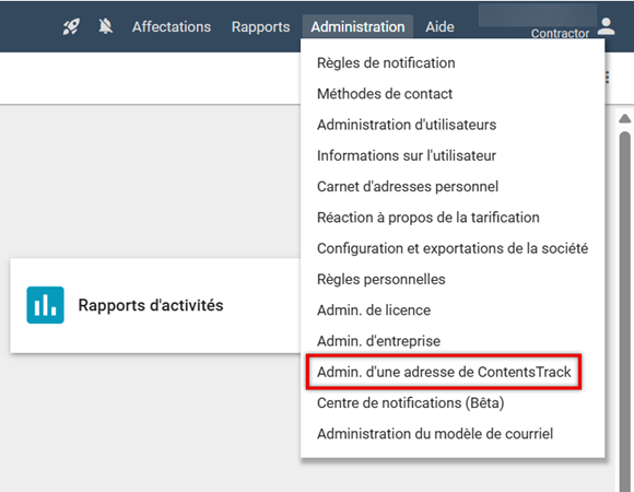 - Sélectionnez Administration des adresses ContentsTrack dans le menu Administration.