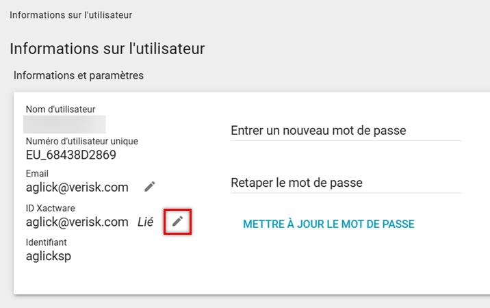 - Sélectionnez l’icône Modifier à côté du champ Identifiant Xactware.