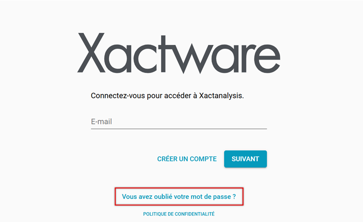 Si vous n'êtes pas un nouvel utilisateur, le mot de passe de votre compte XactAnalysis a peut-être expiré. Sélectionnez Mot de passe oublié ? ou demandez à votre administrateur de compte de réinitialiser votre mot de passe pour vous.