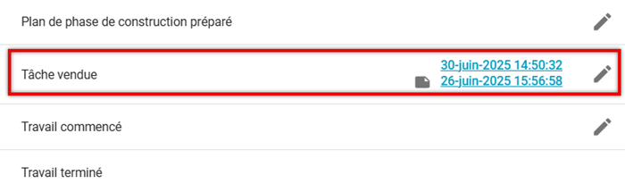 Nous avons ajouté un nouveau statut de flux de travail, Tâche vendue, qui enregistre la date et l’heure de vente d’une tâche. À l’instar du statut « Tâche non vendue », vous pouvez mettre à jour le nouveau statut « Tâche vendue » autant de fois que nécessaire.