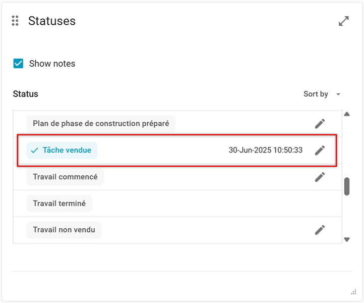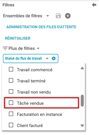 - Nous avons renommé le statut « Tâche vendue » en « Travail en cours ».