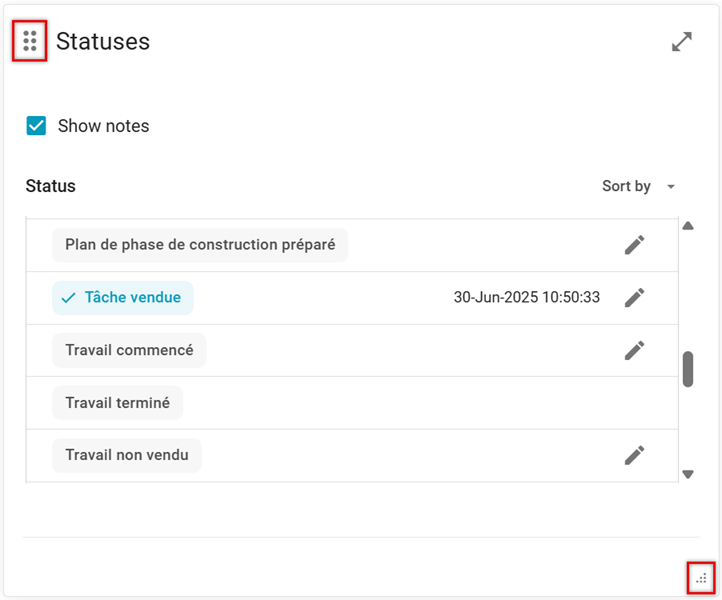 Pour redimensionner un widget, cliquez sur l’icône Redimensionner
